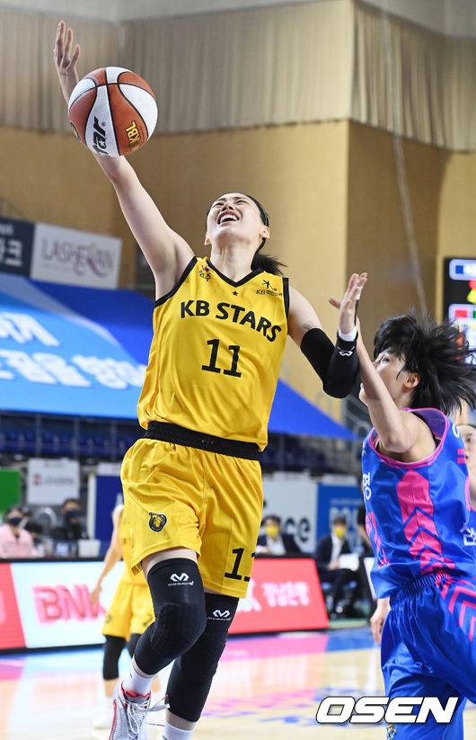 1쿼터 KB 강이슬이 레이업슛을 시도할때 파울을 당하고 있다. 2021.10.24 / rumi@osen.co.kr