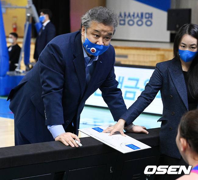 삼성생명 임근배 감독이 작전을 설명하고 있다. 2021.10.24 / rumi@osen.co.kr