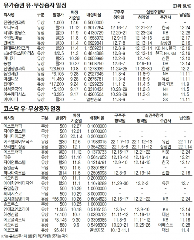 [표]유가증권·코스닥 유무상증자 일정