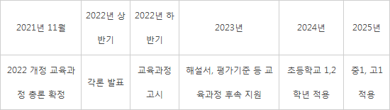 <표1> 교육과정 향후 추진일정