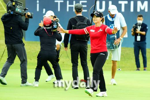 [마이데일리 = 부산 곽경훈 기자] 임희정이 24일 오후 부산광역시 기장군 LPGA 인터내셔널 부산(파72·6,726야드)에서 진행된 미국여자프로골프(LPGA) 투어 'BMW 레이디스 챔피언십2021' (총상금 200만달러, 우승상금 30만달러) 4라운드에서 연장전에게 고진영에 아쉽게 패배한 뒤 동료들의위로를 받고 있다.