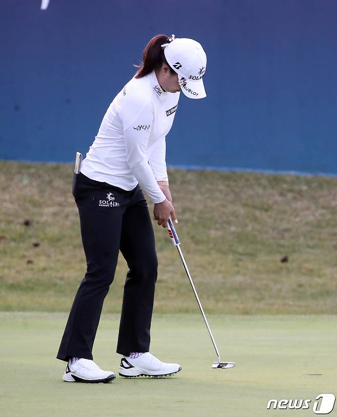 (부산=뉴스1) 여주연 기자 = 24일 부산 기장군 일광면 LPGA 인터내셔널 부산CC에서 열린 '미국여자프로골프(LPGA)투어 BMW 레이디스 챔피언십'에 참가한 고진영이 1차 연장에서 퍼트하고 있다. 2021.10.24/뉴스1