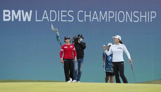 [서울=뉴시스] 고승민 기자 = 고진영이 24일 부산 기장군 LPGA 인터내셔널 부산에서 열린 BMW 레이디스 챔피언십에서 우승을 차지, 한국 선수 200승의 쾌거를 이룩했다. 사진은 이날 연장전 직후 고진영 모습. (사진=BMW코리아 제공) 2021.10.24. photo@newsis.com *재판매 및 DB 금지