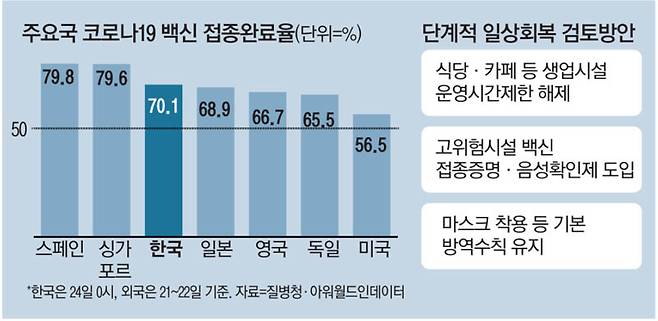 정부는 25일 단계적 일상 회복 방안의 초안을 공개한 뒤 29일 최종안을 발표할 방침이다.