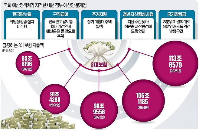 국회예산정책처는 ‘2022년 예산안 총괄 분석 보고서’를 통해 정부의 청년 예산을 이같이 평가했다. 예정처는 또 정부가 청년 자산 형성을 돕겠다며 내놓은 청년통장에 대해 “혜택이 적어 청년들의 호응을 얻기 어렵다”고 평가했다. 예정처는 정부의 내년 예산안에 대해 정제된 표현을 쓰면서도 항목별로 조목조목 비판했다.