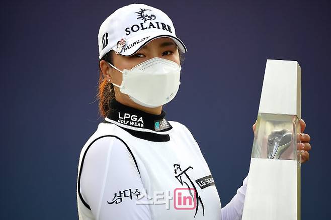 [포토] 고진영 '코로나 속 우승 사진 찍기'
