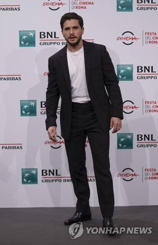 Actor Kit Harington poses during a photo call for the movie 'Eternals' at the 16th edition of the Rome Film Fest in Rome, Sunday, Oct. 24, 2021. (AP Photo/Domenico Stinellis)
