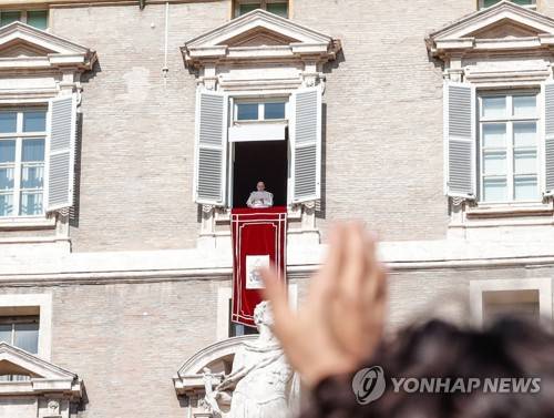 epa09542925 Pope Francis leads the Angelus prayer from the window of his office overlooking Saint Peter's Square, in Vatican City, 24 October 2021. EPA/GIUSEPPE LAMI