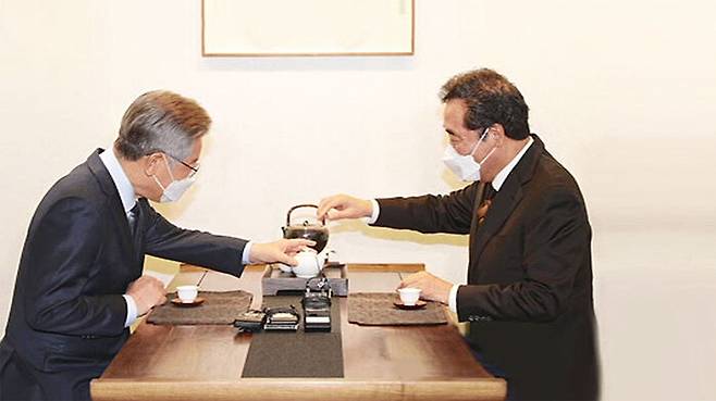 30분 동안 이어진 회동에서 이 전 대표는 이재명 후보 선거대책위 상임고문을 맡고 이 후보는 이 전 대표의 핵심 공약인 신복지 정책을 최우선으로 챙길 것을 약속했습니다.