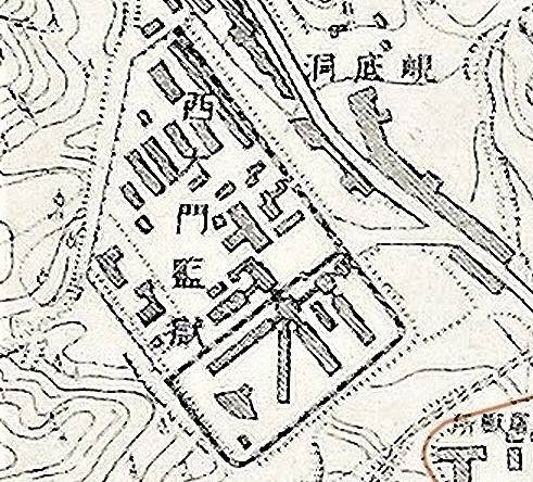 | ▲ 1921년 형무소 모습 지도 남동측에 방사형 파놉티콘 구조로 신축된 옥사로 보아 1921년 서대문 형무소 모습으로 추정. |