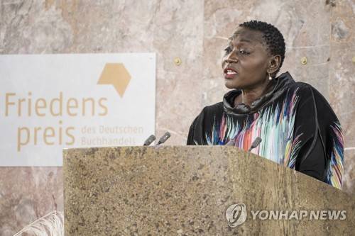 epa09542945 Kenyan-British sociologist and activist Auma Obama gives the laudatio during the Peace Prize of the German Book Trade ceremony at the Paulskirche church in Frankfurt am Main, Germany, 24 October 2021. The Peace Prize of the German Book Trade by the German Publishers and Booksellers Association (Boersenverein des Deutschen Buchhandels) worth 25,000 EUR is presented since 1950 at the end of the Frankfurt Book Fair. EPA/Thomas Lohnes / Evangelischer Pressedienst / POOL