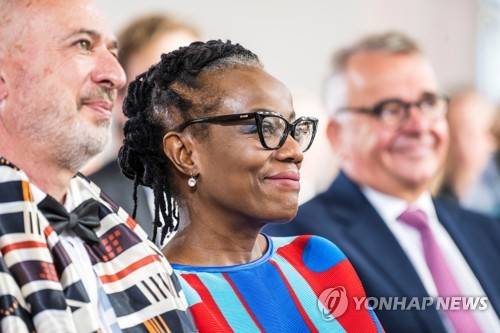 epa09542974 The 2021 Peace Prize laureate, Zimbabwean author and filmmaker Tsitsi Dangarembga (R) and her husband Olaf Koschke attend the ceremony of the Peace Prize of the German Book Trade at the Paulskirche church in Frankfurt am Main, Germany, 24 October 2021. The Peace Prize of the German Book Trade by the German Publishers and Booksellers Association (Boersenverein des Deutschen Buchhandels) worth 25,000 EUR is presented since 1950 at the end of the Frankfurt Book Fair. EPA/Thomas Lohnes / Evangelischer Pressedienst / POOL