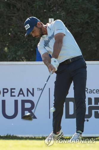 epa09543110 Spanish golf player Sebastian Garcia Rodriguez tees off on the last day of the Mallorca Golf Open tournament at Golf Santa Ponsa I in Palma de Mallorca, Balearic Islands, Spain, 24 October 2021 EPA/CATI CLADERA