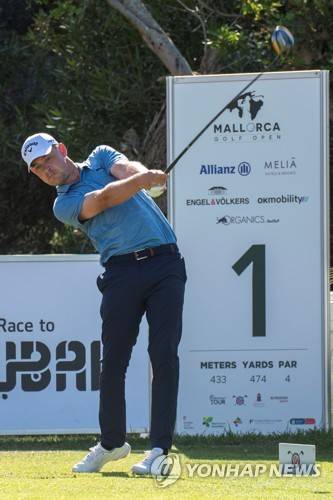 epa09543115 Danish golf player Jeff Winther tees off on the last day of the Mallorca Golf Open tournament at Golf Santa Ponsa I in Palma de Mallorca, Balearic Islands, Spain, 24 October 2021. EPA/CATI CLADERA