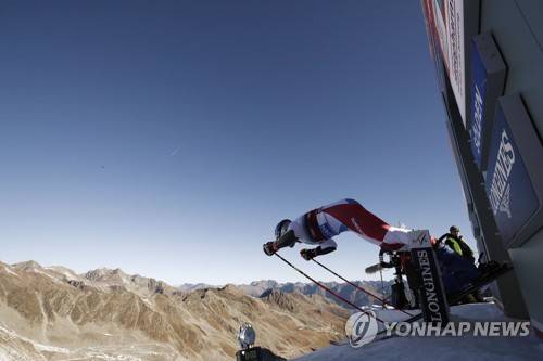 Switzerland's Marco Odermatt starts during an alpine ski, men's World Cup giant slalom, in Soelden, Austria, Sunday, Oct. 24, 2021. (AP Photo/Gabriele Facciotti)