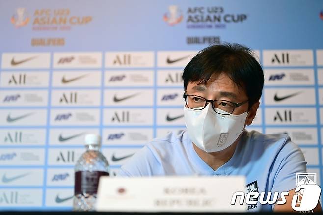 (서울=뉴스1) = 황선홍 U-23(23세 이하) 대표팀 감독이 24일 싱가포르 머큐리록시호텔에서 열린 2022 아시아축구연맹(AFC) U-23 아시안컵 예선 공식 기자회견에서 질의에 답하고 있다.(대한축구협회 제공) 2021.10.24/뉴스1