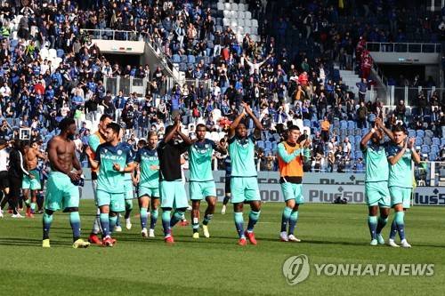 epa09543232 Udinese players react after the Italian Serie A soccer match between Atalanta BC and Udinese Calcio at the Gewiss Stadium in Bergamo, Italy, 24 October 2021. EPA/PAOLO MAGNI