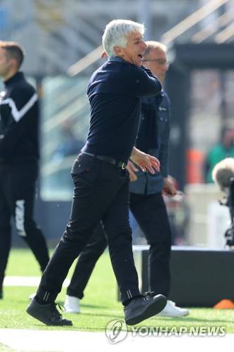 epa09543279 Atalanta's coach Gian Piero Gasperini reacts at the end of the Italian Serie A soccer match between Atalanta BC and Udinese Calcio at the Gewiss Stadium in Bergamo, Italy, 24 October 2021. EPA/PAOLO MAGNI