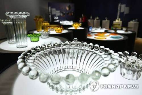 epa09543371 Items made of pressed glass by Polish designers Eryka and Jan Drost are on display in the eighth edition of Polish Designs Polish Designers exhibition at the Gdynia City Museum, in Gdynia, northern Poland, 24 October 2021. The exhibition presents a selection of the work by the glass designer duo. EPA/Adam Warzawa POLAND OUT