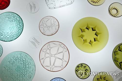 epa09543372 Items made of pressed glass by Polish designers Eryka and Jan Drost are on display in the eighth edition of Polish Designs Polish Designers exhibition at the Gdynia City Museum, in Gdynia, northern Poland, 24 October 2021. The exhibition presents a selection of the work by the glass designer duo. EPA/Adam Warzawa POLAND OUT