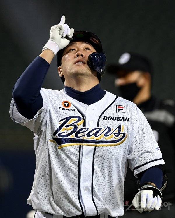 24일 서울 잠실야구장에서 ‘2021 신한은행 SOL KBO리그’ 두산 베어스와 LG 트윈스의 DH 2차전 경기가 열렸다. 9회말 2사에서 두산 대타 양석환이 동점 솔로 홈런을 쏘아 올린 뒤 환호하고 있다.