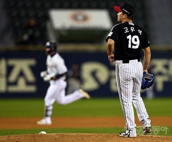 24일 서울 잠실야구장에서 ‘2021 신한은행 SOL KBO리그’ 두산 베어스와 LG 트윈스의 DH 2차전 경기가 열렸다. 9회말 2사에서 두산 대타 양석환에게 동점 솔로 홈런을 허용한 LG 마무리 고우석이 아쉬워하고 있다.