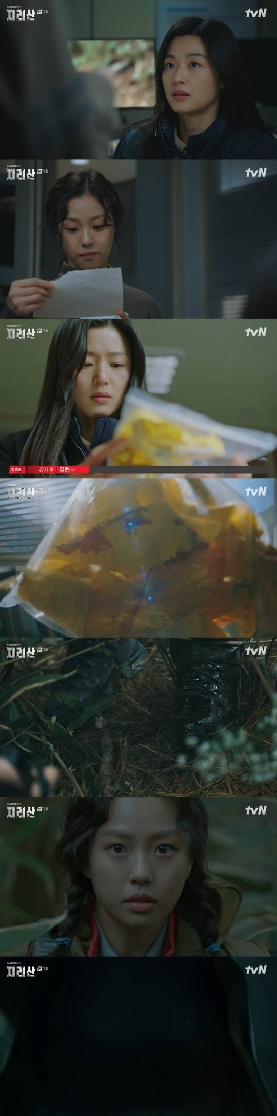 10월 24일 방송된 tvN 토일드라마 ‘지리산’ 2회(극본 김은희/연출 이응복 박소현)에서 서이강(전지현 분)은 이다원(고민시 분)에게 표식을 남겨 달라고 부탁했다.