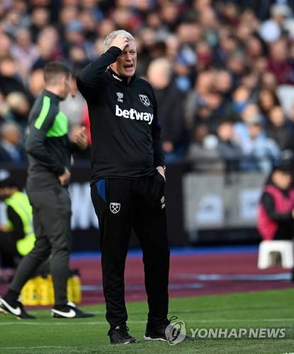 epa09543423 West Ham United manager David Moyes reacts during the English Premier League soccer match between West Ham United and Tottenham Hotspur at the London Stadium in London, Britain, 24 October, 2021. EPA/ANDY RAIN EDITORIAL USE ONLY. No use with unauthorized audio, video, data, fixture lists, club/league logos or 'live' services. Online in-match use limited to 120 images, no video emulation. No use in betting, games or single club/league/player publications.