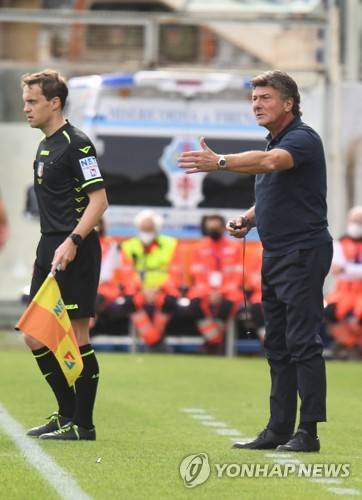 epa09543430 Cagliari's coach Walter Mazzarri reacts during the Italian Serie A soccer match between ACF Fiorentina and Cagliari Calcio at the Artemio Franchi stadium in Florence, Italy, 24 October 2021. EPA/CLAUDIO GIOVANNINI