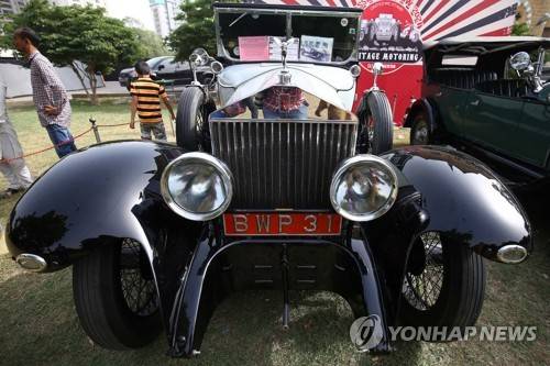 epa09543441 A frontal view of a 1924 Rolls Royce on display during a show organized by the Vintage and Classic Car Club of Pakistan, in Karachi, Pakistan, 24 October 2021. More than 60 vintage and classic cars were on display, some coming all the way from across the country, others from Karachi and all heading on to Khyber. EPA/SHAHZAIB AKBER