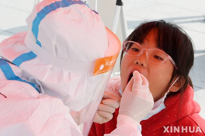 [란저우=신화/뉴시스] 중국 간쑤성 란저우 청관구에서 24일 어린이가 코로나19 검사를 받고 있다. 2021.10.24