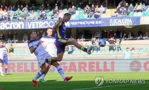 epa09543490 Hellas Verona's Antonin Barak (R) in action during the Italian Serie A soccer match between Hellas Verona and SS Lazio in Verona, Italy, 24 October 2021. EPA/FILIPPO VENEZIA