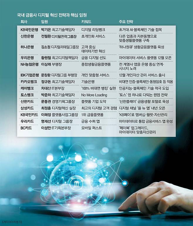 본지는 이 같은 변혁의 최전선에 있는 최고기술책임자(CTO)들을 인터뷰했다. 회사별로 목표는 조금씩 달랐지만 공통된 비전은 '넘버원 종합 생활금융플랫폼'이 되는 것이었다. 이미 '페이'로 은행 앱에서 결제를 하고 카드 앱에서 오픈뱅킹으로 모든 은행 계좌 거래를 할 수 있는 시대다. 업종을 불문하고 디지털 플랫폼 전쟁이 벌어지고 있는 것이다.
