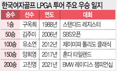 역시 고진영(26)이었다. 고진영이 24일 미국여자프로골프(LPGA) 투어 BMW 레이디스 챔피언십에서 우승하며 한국인 선수 통산 LPGA 200승의 주인공이 됐다. 고(故) 구옥희 선수가 1988년 LPGA 투어에서 첫 승을 기록한 지 33년 만이다.