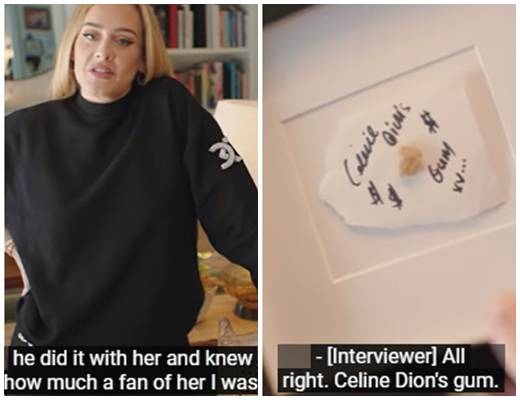 아델은 “내가 가장 소중히 여기는 장식 중 하나는 셀린 디온이 씹던 껌을 보관한 액자”라고 답했다. 그는 실제 액자를 보여주며 셀린 디온의 ‘찐팬’임을 증명했다.