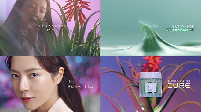 이번 광고는 약 400평의 거대한 알로에밭을 배경으로, 몽환적이고 신비로운 분위기로 제작되었다. 김정문알로에가 47년 전 알로에를 국내에 최초로 보급, 알로에 대중화에 힘썼던 것처럼 '다시, 알로에의 시대로'라는 메인 카피와 함께 '큐어크림S'를 소개하고 있다.