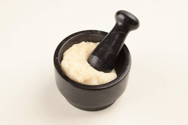 5. 쪄낸 반죽은 절구에 넣고 치대어 쫄깃한 식감을 만든다.