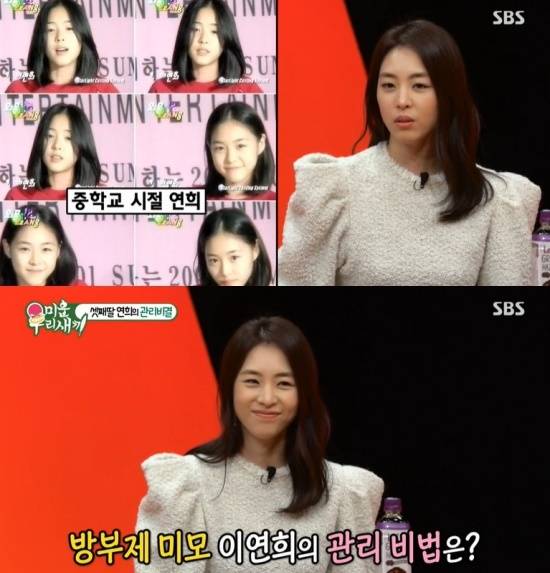 이연희는 "저게 중학교 1학년 때인가 중학교 2학년 때인가"라고 떠올렸고, 서장훈은 "어릴 때나 지금이나 그대로다. '도대체 어떻게 관리를 하냐'라고 물어봤더니 비법이 아낌없는 투자라더라"라고 말을 이었다.