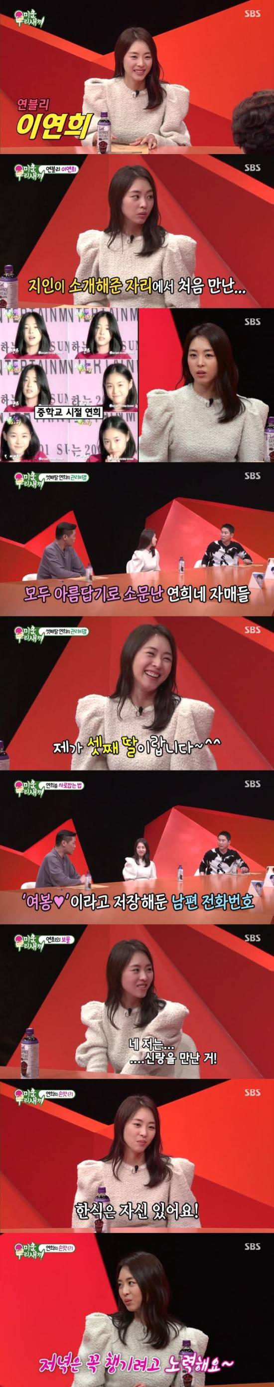 이날, 스페셜 MC로는 모태 미인 배우 이연희가 출연해 결혼 2년차 달달한 신혼 이야기를 공개했다. 지인이 소개해준 첫 만남에 남편에게 반해 결혼을 결심했다는 이연희는 아직까지 부부싸움을 한 번도 한 적이 없다고 전했다.