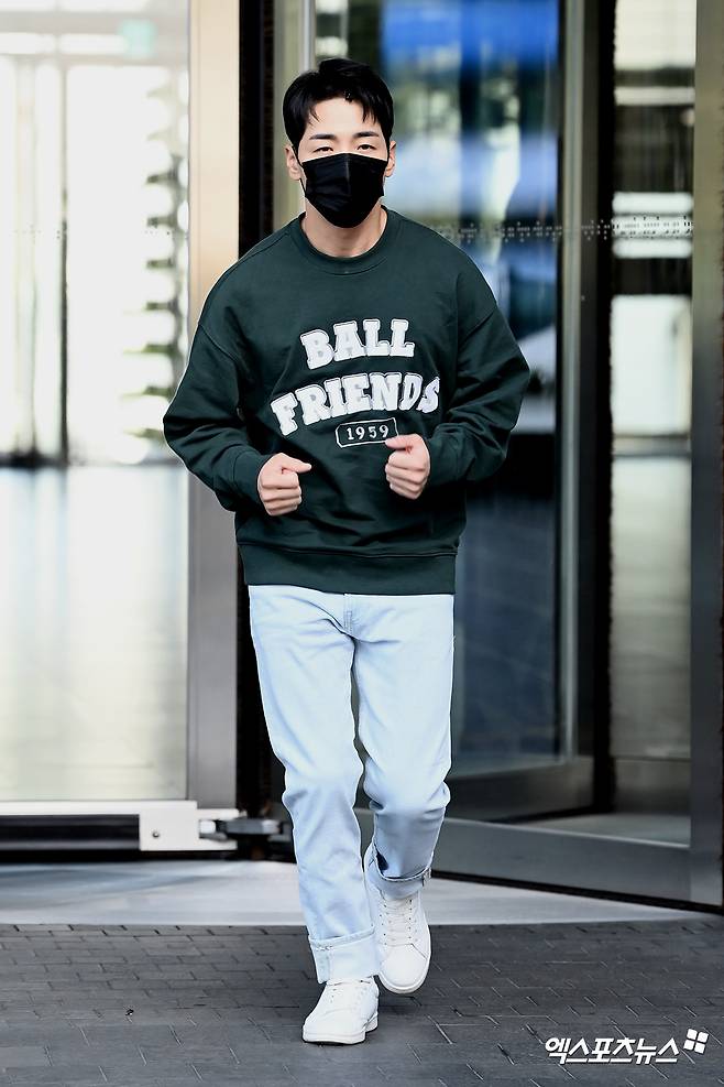 (엑스포츠뉴스 고아라 기자) 25일 오전 서울 상암동 SBS프리즘타워에서 진행되는 '더트롯쇼'에 출연하는 가수 박군이 출근길 포즈를 취하고 있다.