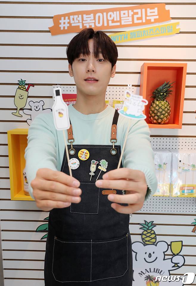 (서울=뉴스1) 박세연 기자 = 배우 이도현이 25일 서울 마포구 해피치즈스마일 연남점에서 '#떡볶이엔말리부' 굿즈를 선보이고 있다.