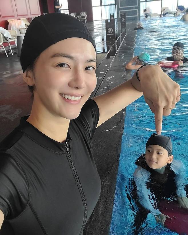 이어 유하나는 호텔 수영장에서 아들과 수영을 즐기고 있다. 똑 닮은 모자의 훈훈한 근황이 눈길을 끌었다.