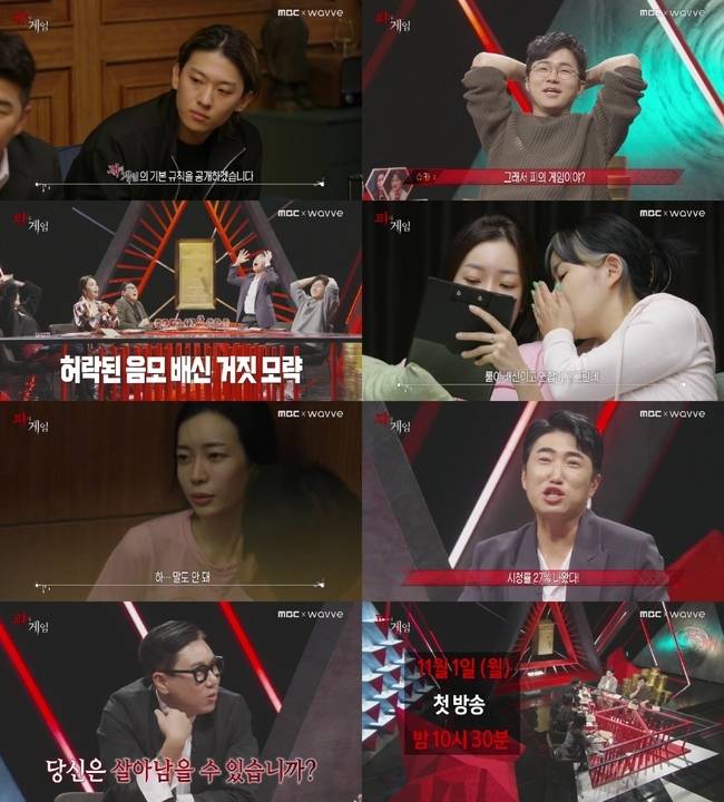 특히 게임의 전체 룰이 공개되자 플레이어 뿐만 아니라 스튜디오에서 이를 지켜보던 이상민은 “와 미친 거 아니야? 대박이다”라며 경악을 금치 못하고 박지윤은 입을 틀어막은 채 말을 잇지 못한다. 또한 최예나는 “와 나 진짜 소름 돋았어”라고 놀라워하는 동시에 슈카는 “그래서 ‘피의 게임’이야? MBC도 막가네요”라고 돌직구를 던져 룰에 대한 궁금증을 키운다.