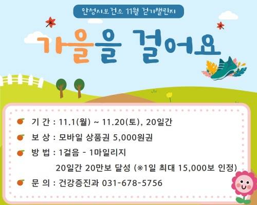 안성시보건소, 11월 걷기 챌린지 운영