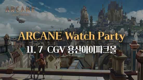 25일 라이엇 게임즈 측은 리그 오브 레전드(이하 LoL) IP를 활용해 제작한 애니메이션 '아케인(ARCANE)'의 와치 파티(Watch Party)를 11월 7일에 서울 CGV 용산아이파크몰에서 개최한다고 밝혔다.