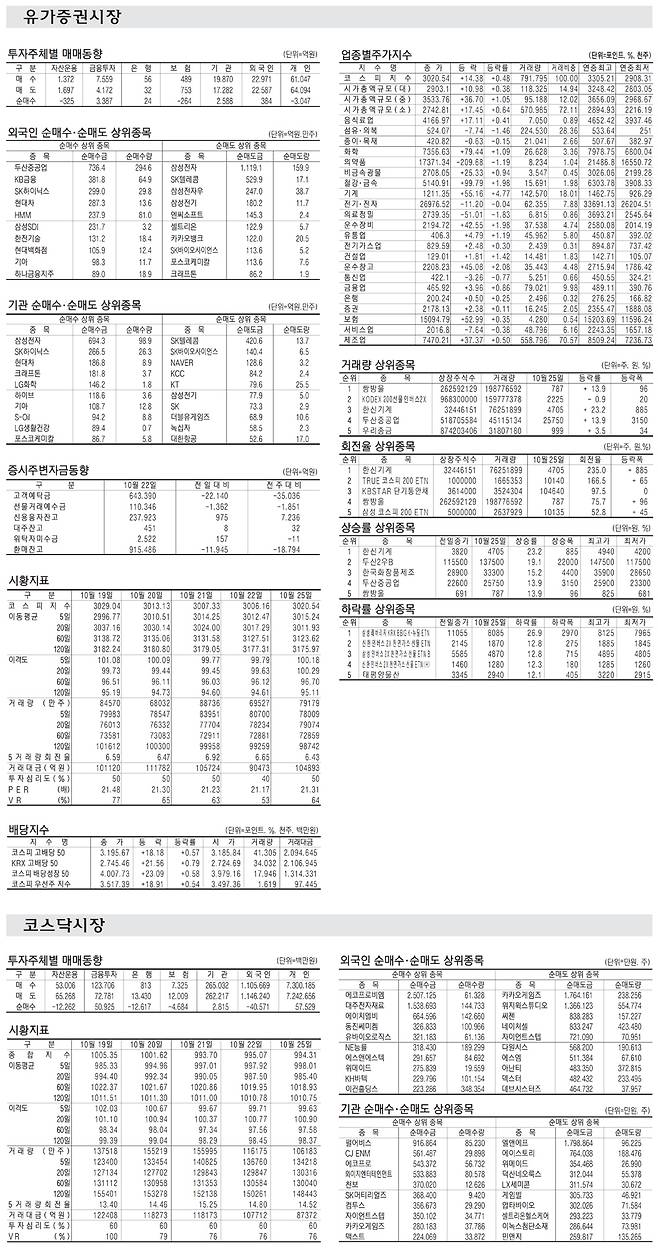 [표] 주요 증시 지표 (10월 25일)