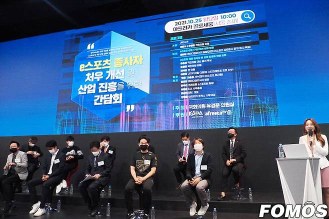 25일 서울시 송파구에 위치한 아프리카 콜로세움에서는 ‘e스포츠 종사자 처우 개선 및 산업 진흥을 위한 간담회’가 개최됐다. 국회의원 유경준 의원실이 주최하고 한국e스포츠협회, 아프리카TV가 후원한 이번 행사에서 선수, 종목사, 구단, 정치권의 관계자들이 앞으로의 발전을 위한 의견을 개진했다.
