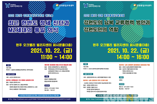 강원통일교육센터(센터장 김응권 한라대교 총장)는 최근 원주 오크밸리 빌리지센터 3층 퍼시몬홀에서 2021년 강원통일교육위원 워크숍과 통일교육포럼을 개최했다고 27일 밝혔다.