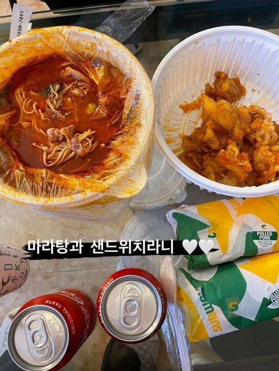 이유비는 25일 자신의 인스타그램에 "마라탕과 샌드위치라니"라는 글과 사진을 게재했다.