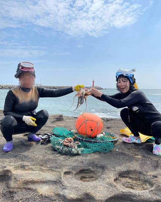 사유리는 25일 자신의 인스타그램에 "제주도에서 해녀 도전!"이라는 글과 함께 사진을 게재했다.